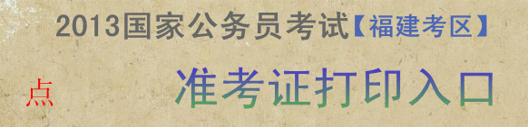 根據(jù)《2013年國家公務員考試錄用考試公告》要求,本次國考報名確認后,報考人員請于2012年11月19日10:00至24日12:00期間,登錄所選考區(qū)考試機構(gòu)網(wǎng)站下載打印準考證。福建中公教育將會在第一時間為考生開通2013年國家公務員考試準考證打印入口(福建考區(qū)),更多國家公務員考試信息請關(guān)注福建公務員考試錄用網(wǎng)。(按 CTRL+D 收藏本頁面)