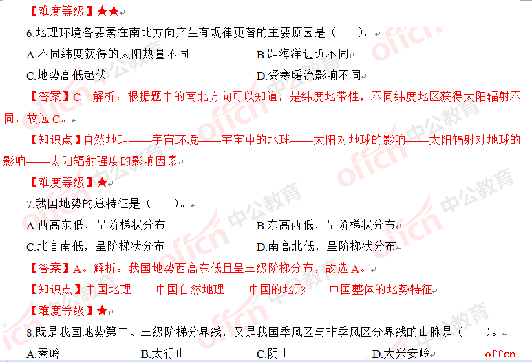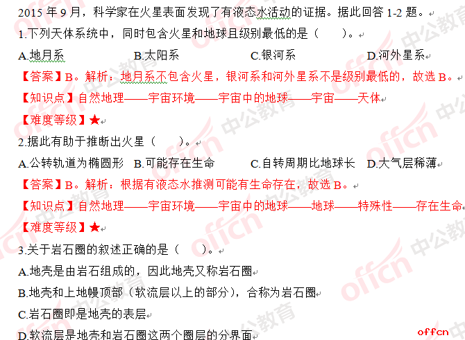 2017年江西教師招聘《高中地理》試題答案及解析