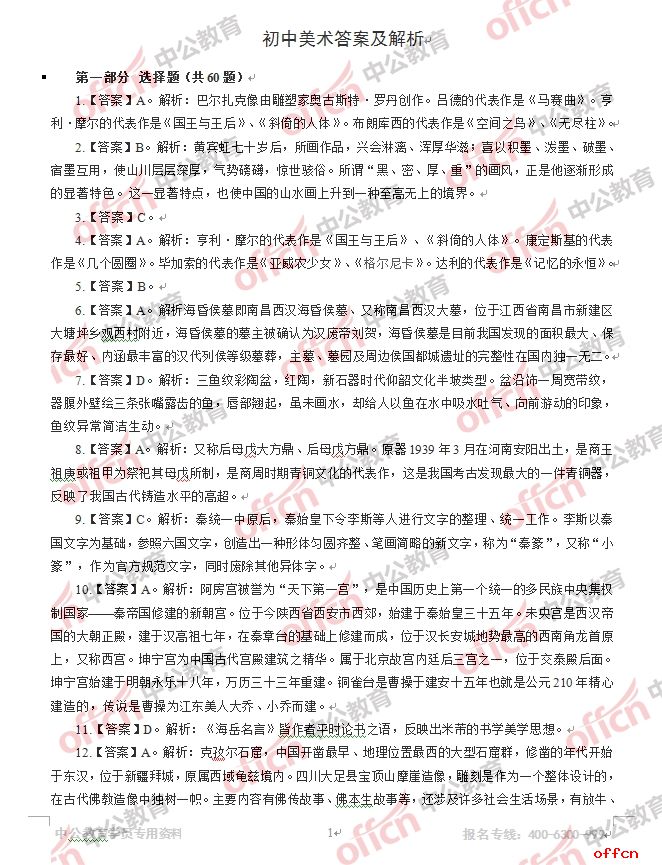 2017年江西教師招聘《初中美術(shù)》試題答案及解析