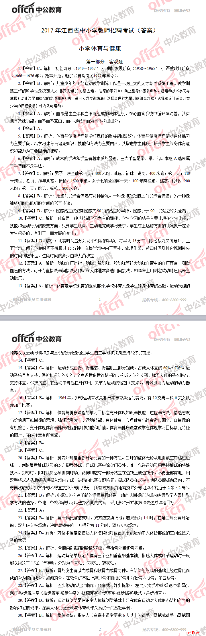 2017年江西教師招聘《小學體育》答案及解析