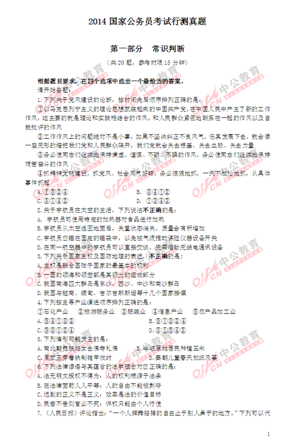 點(diǎn)擊查看:2014國(guó)家公務(wù)員考試 及答案匯總